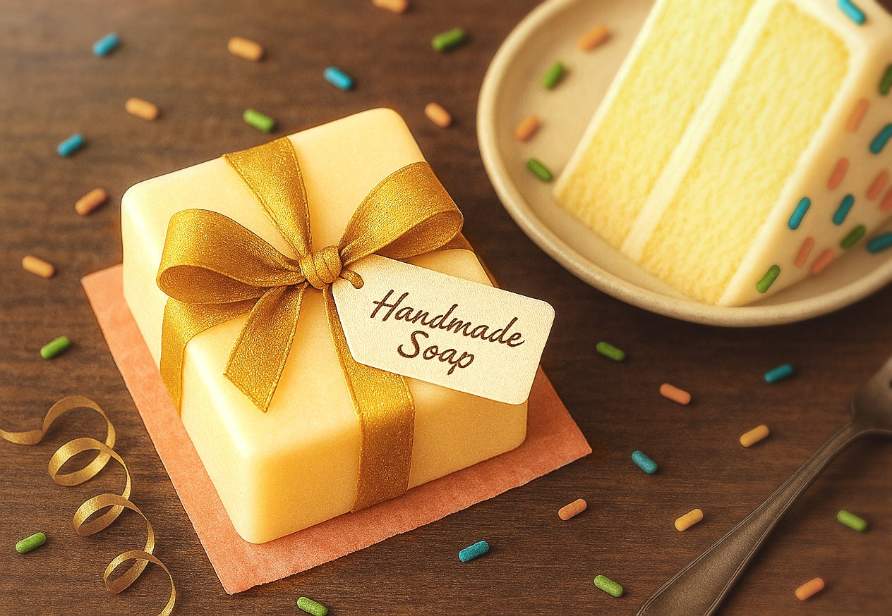 Turn your daily ritual into a moment of pure celebration as sweet notes of vanilla birthday cake fill the air. Handcrafted with skin-loving ingredients, our Birthday Wish soap gently cleanses and pampers, leaving your skin soft, radiant, and deliciously scented. Perfect as a thoughtful gift or a self-care treat, each lather celebrates your worth every single day.